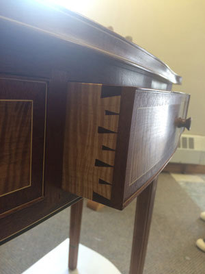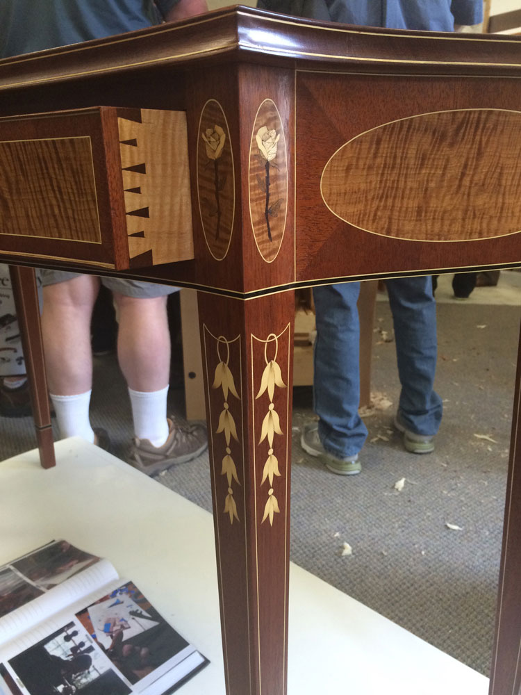 Frank Strazza's 'Roses' table on display in the Amana Furniture Shop