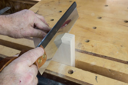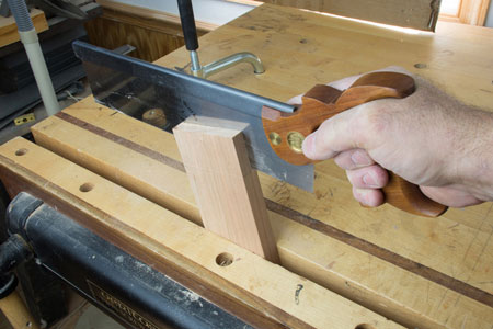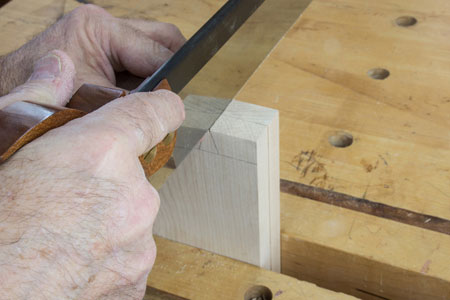 . Before I look at each saw and show how I use both the dovetail saw and a tenon saw, I want to discuss the two most important features of a saw, in my opinion. First, how well the saw feels in my hand and, second, how well the saw tracks in a cut. The saw should feel like an extension to your hand and arm and the saw should track in the kerf with no compensation by you while you are cutting. I find that all of the Bad Axe saws feel perfect in your hand and this is due to the diligence that they put into defining the best 'hang angle' for each saw.