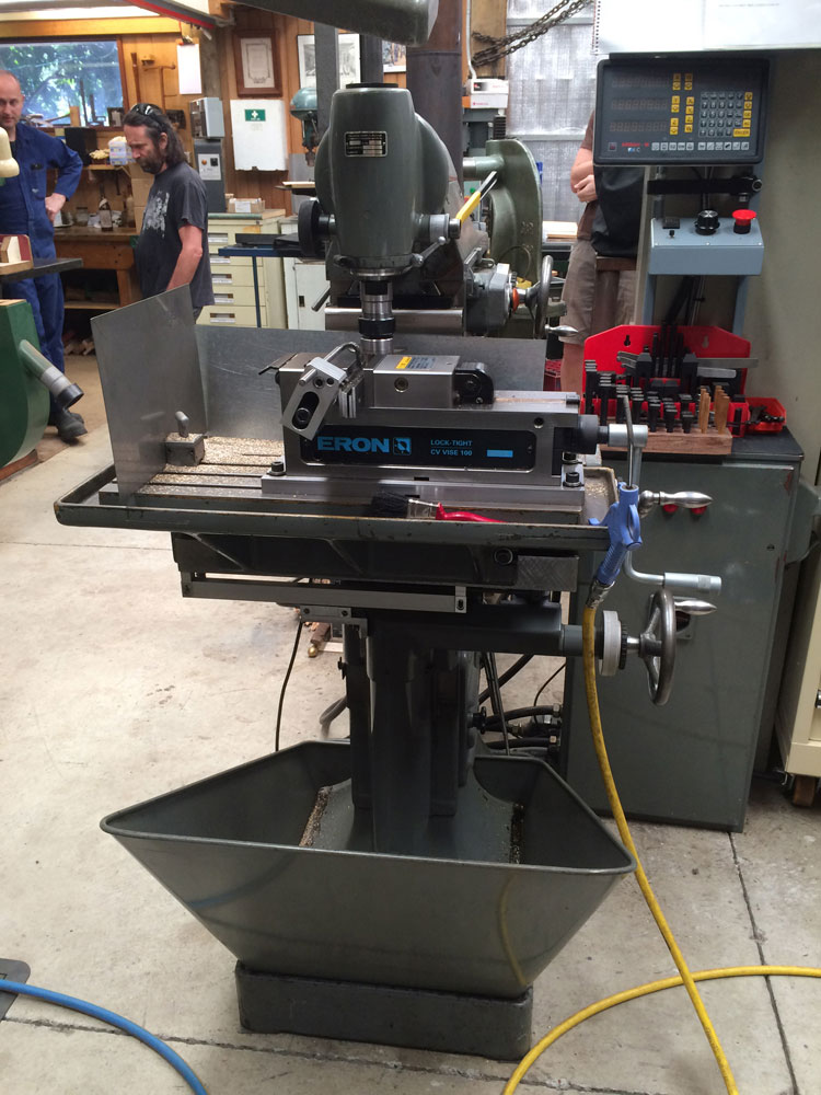 Chris showed me the turret mill, a very universal machine for making general engineering parts. Chris uses it to mill out pockets for infills, dimension material, drill, ream, bore and much more.