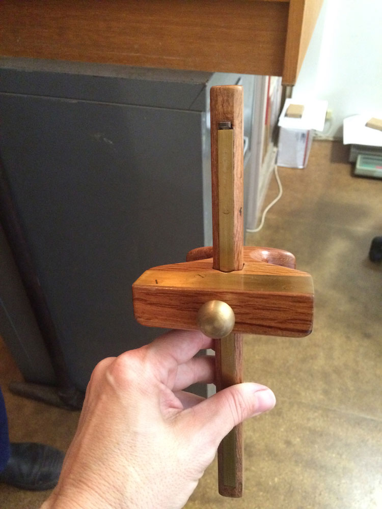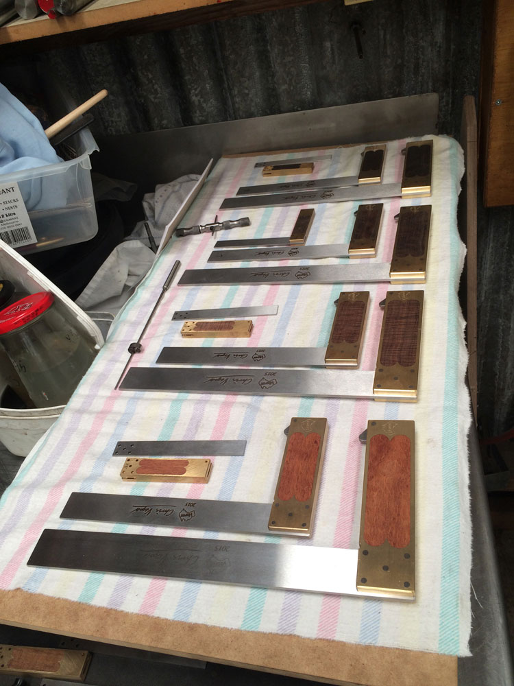Vesper Double Square, in a set that includes a dovetail blade, two 3-inch rulers and a 6-inch ruler (you can also buy the set without the 6 inch ruler if you prefer), but what customers really flock to Vesper Tool Works for are his gorgeous inlay tools. They are striking in pictures, but even more impressive in person.