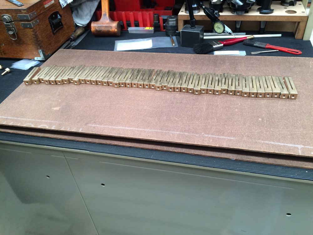 Once the blades are ground and the bodies are ready to go with their infills set, Chris uses the Deckel FP1 milling machine to create the extremely accurate slots in the bevel body and blade that allow them to line up exactly.