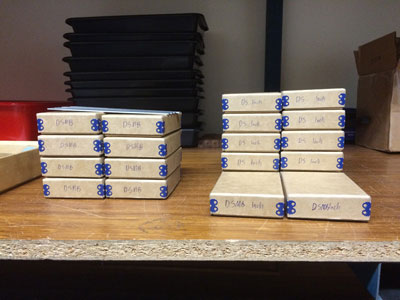 I wish I had gotten more shots in the panic room but I did take a photo of the product Chris is restocking Highland with - 28 double squares ready to go.