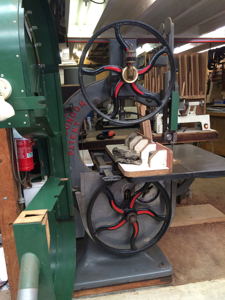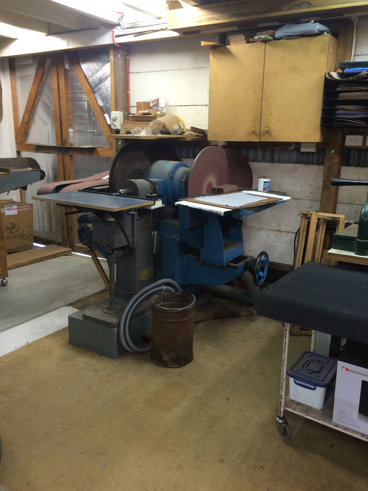 Chris then introduced me to the enormous double ended pattern maker's disc sander he uses to clean up the infills as well as squaring off blocks of timber.