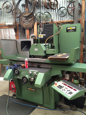 Next up was the large surface grinder, one of Chris's favorite machines and you can see why - it leaves a beautiful surface on every blade. All of the blades in Vesper Tools are ground on this machine, including bevel blades, tri-square blades and double square parts.
