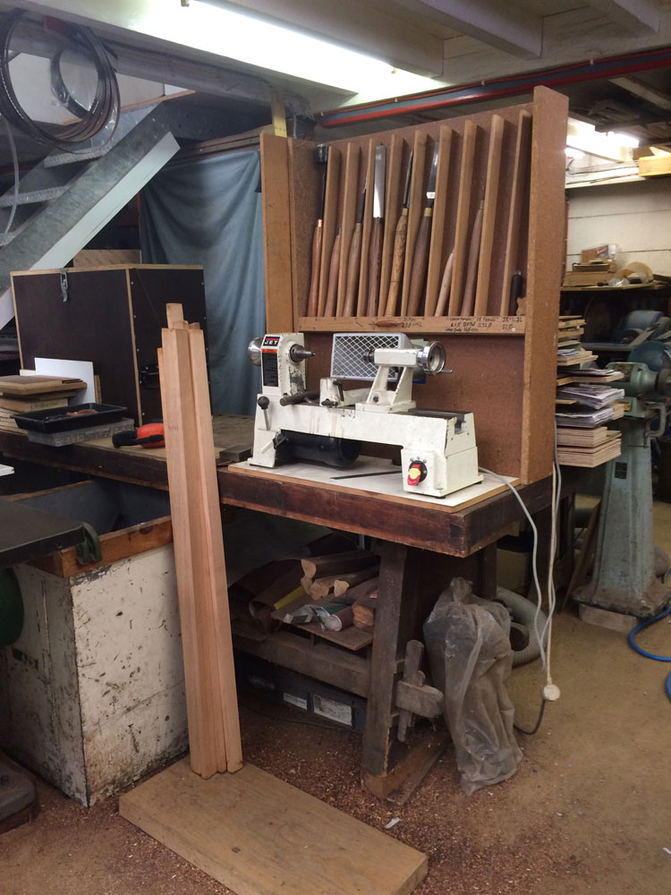 Chris has a turning station set up to use whenever it may be needed.