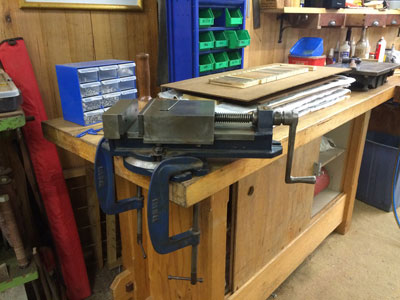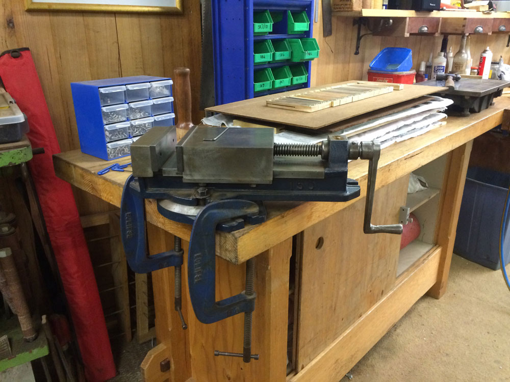 This vise with 150mm wide jaws is used as a clamping device while assembling bevels.