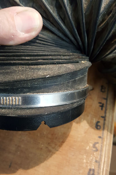 Something in my shop has been bugging me for a long time. When trying to clean up the shop floor with the dust collector hose it keeps sucking down on the floor. I pop it loose and keep vacuuming but then it sucks down again and I have to keep popping it loose. If only I could break the suction factor without affecting the flow...