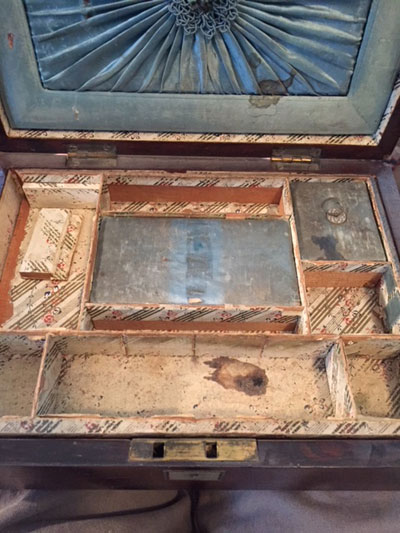 Victorian Sewing Box circa 1880 lined with tissue paper