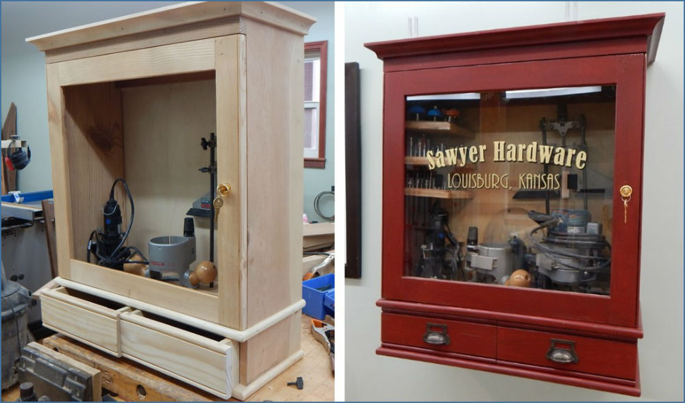Figure 3. Router cabinet in plain pine and painted. Should it be natural?