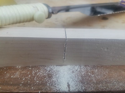 single blade thickness so I drew a single line across the end-grain and then used the jig to draw lines