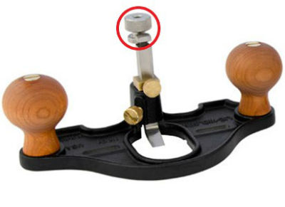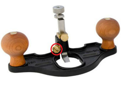 The lock screw is tightened and loosened before and after every adjustment of the tool. When the lock screw is tightened adequately, the blade will ideally not slip in use. When you want to adjust the depth of the plane, you first loosen the lock screw. Next you will use the depth adjustment nut to guarantee the depth of cut. Finally, you will retighten the lock screw. Note: On a Veritas router plane, the lock screw is found on the back of the collar.