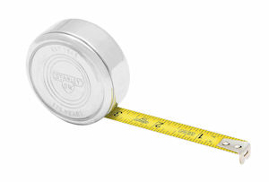 In celebration of their 175th anniversary, Stanley Hand Tools has released this classic, limited edition pocket tape based on a 1933 design. It has a 10 foot long rule housed within a sturdy steel case with a polished chrome finish. The case side is embossed with the historic Stanley "Sweetheart" logo, the initials S.W. (for Stanley Works) within a heart-shaped outline. The tape ruler has a hook end, is 1/2 inch wide and has a non-glare finish. 1/16th graduations are on both edges of the tape.