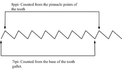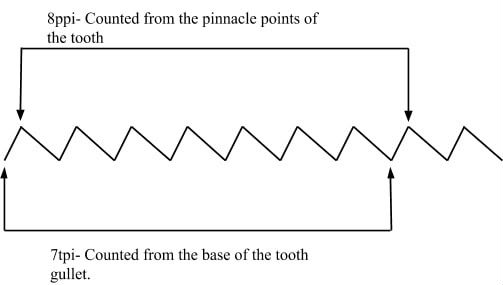 Below, I have created an illustration explaining the difference between tpi and ppi (teeth per inch versus points per inch) referenced in Highland's table.