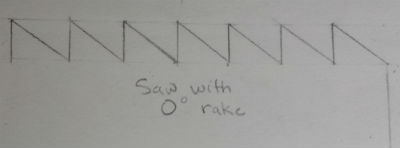 Below I have drawn a blowup of a sawtooth filed with a 0 degree rake pattern:
