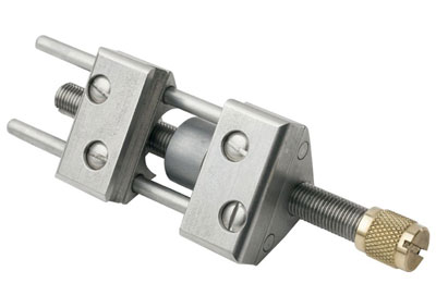 , which is available with a set of replaceable jaws to hold chisel, plane and skewed blade shapes.