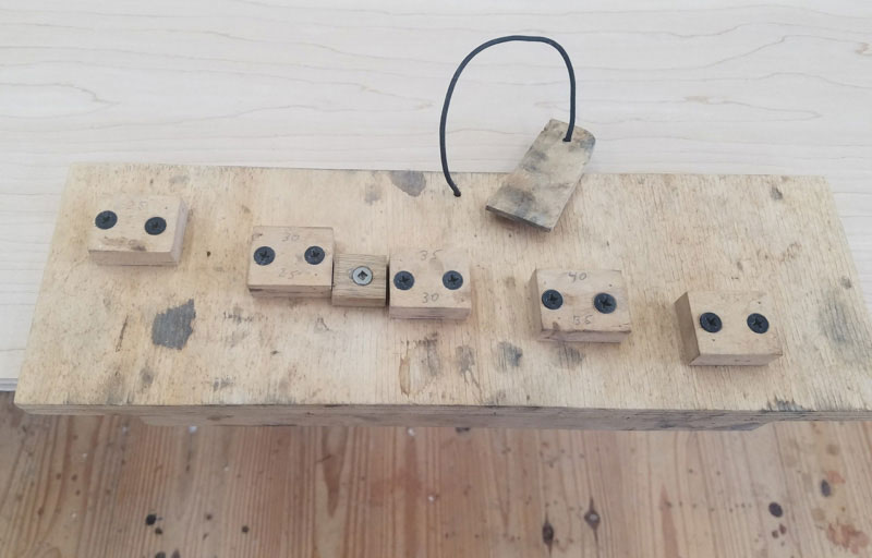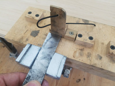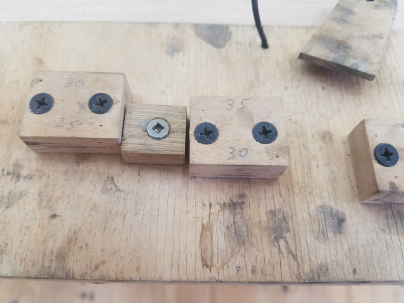 The angle setting jig is based upon the fact that the distance that the blade protrudes from the front edge determines the angle created on the bevel. The honing jigs come with this distance information so you can make a board with little blocks set at these distances. The little piece of wood on the string is used to set a micro-bevel.