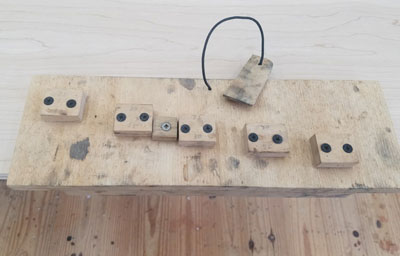 mounted on a wooden base with a handle that is about 2" wide.