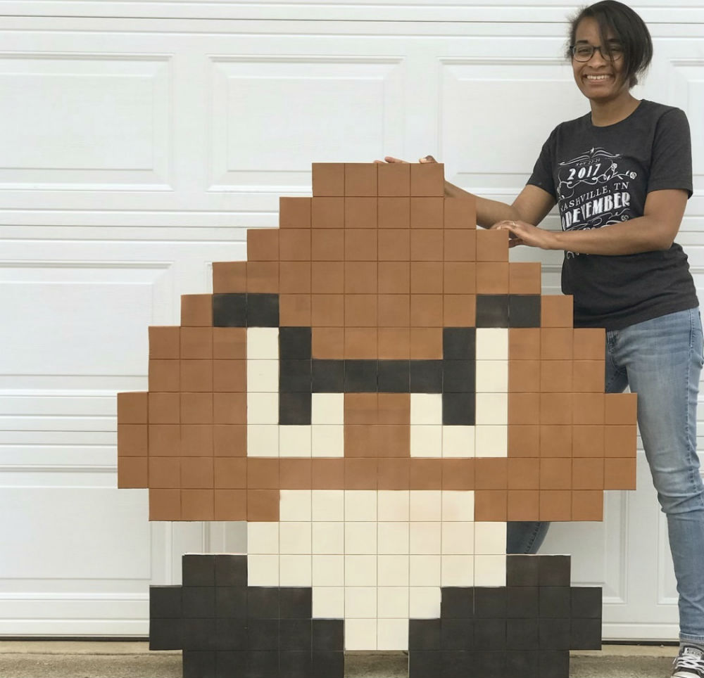 8-bit representation of two of her favorite things, woodworking and video games.