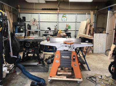 She has a dedicated workshop in her 2 car garage, which includes two bandsaws, a Grizzly 14"