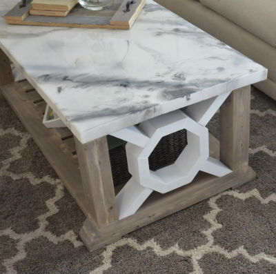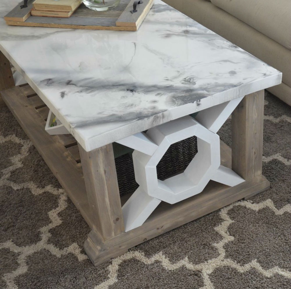 such as the wood table top she made which actually looks like real marble. With the use of spray paint,