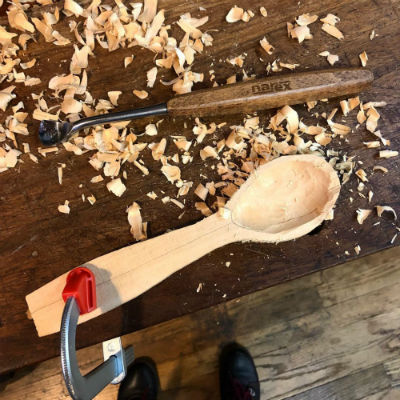 knife, a #5 bent spoon gouge, and a straight detail knife. It's the perfect set for beginning carving and even includes a blank to practice. Molly's dad cut a few additional blanks for her, which she definitely needed. This project led to