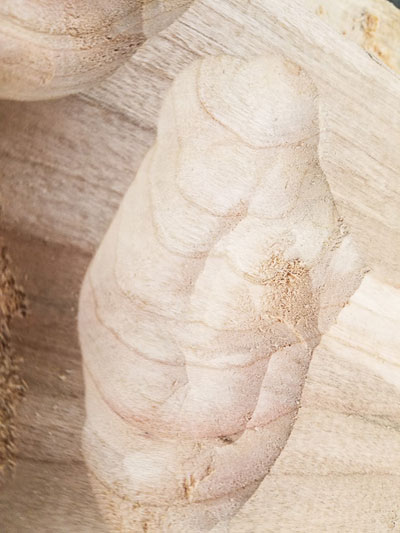 ends and sides together. The gouge easily moved back and forth along the long grain direction and