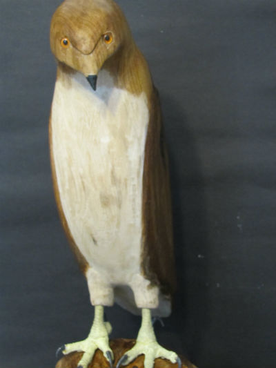 Red-tail Hawk - Butternut. 17" high; 27" with cherry log base.