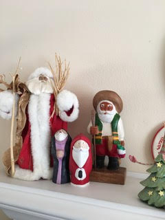 I went through a bit of a santa claus phase. One year I made about 20 of them for all the staff in the pediatric clinic at Columbus Children's Hospital. They were of the style of the two little guys you see below. I started the bigger santa a long time ago and I finally finished it for my mother last year. I thought she might like to see an Hispanic santa for a change. She seemed to like it.