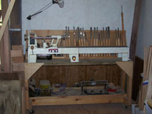If you will be working on more than one project at a time (and you probably will whether you want to or not) the issue of work flow becomes especially important. Trust me, you do not want to be jumping back and forth over part of one project with parts of another. Think about how you make parts, which tools you tend to use together and group those. I like to have my table saw, router table, drill press and band saw in close proximity for I use these for most of my parts making, then they go to a sanding area where I may refine shapes or do finish sanding. Chop saw and surface planer are also close by each other. The surface planer is on wheels so I can let it join the parts making playgroup or be used as a lumber prep tool. The turning lathe and grinder have a corner of their own near the parts making quartet but out of harms way so it doesn't impede the cutting of large stock.