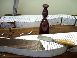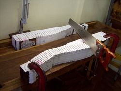 frontal surface and I also made cardboard patterns for the sinuous front rails, which were then hand