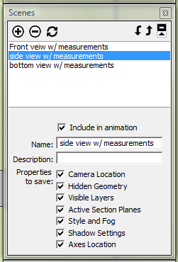 enter a new name such as "front view w/ measurements" and press enter. Now the scene tab at the top