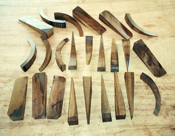 Several possibilities were considered, tending towards a series of pieces turned on the lathe, the