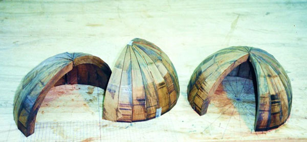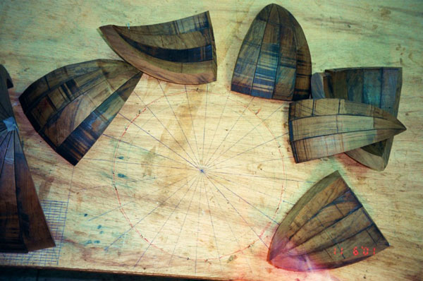 The sectors in several assembling stages and the hollow globe are shown in the following photos.