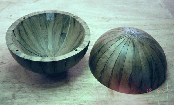 After being entirely assembled and glued, the two half spheres were sanded round and smooth in the