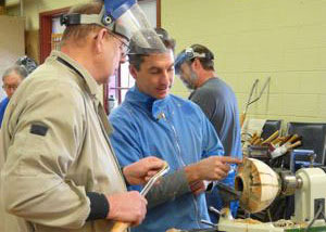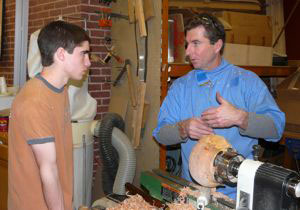 many hailing from far away. The result was some good bowls, some mediocre ones and some chunks of wood flying around the room. It looked to me as if everybody had a good time, but one young man about seventeen years old summed it up for all of us when he decided the big thing he got out of the class was, "I am not as good as I thought I was."