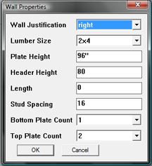 wall height and thickness (2x4, 2x8, etc.) as well as header height and stud spacing. You should try