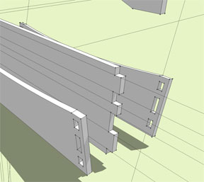 As you can see from the finished model, the parts are all joined using mortise and tenon joinery.