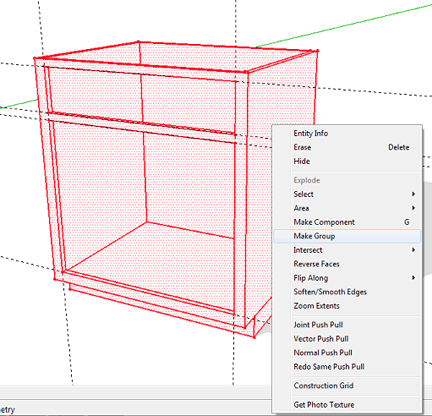 • Select the drawer front and the drawer box and make them a group or component.