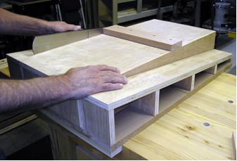 Figure 23. The tall miter fence, sometimes called a "donkey's ear" or "birdhouse" fixture is