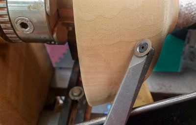 now perform shear cuts with the tool flat on the tool rest which makes it a much safer cut. You should