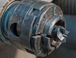on the jaws of the chuck and stabilizes the wood.
