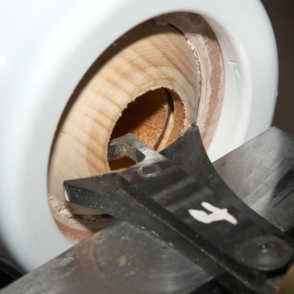 into the wood. Continue until the cutter has reached its maximum depth; you may need to retract it