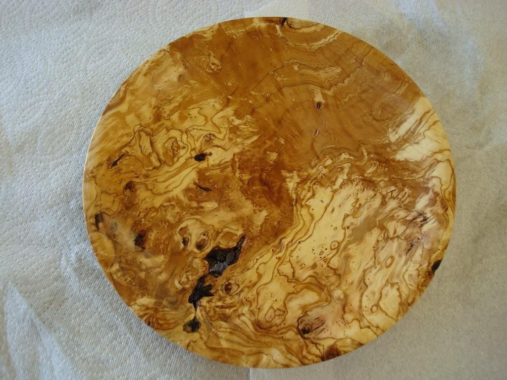 wood. Lots of character. Perhaps this might become another piece that would fit in with the olive vases.