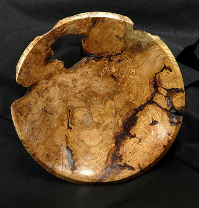 Red Oak Burl Bowl - 13-1/4" diameter, with void, bark inclusions.