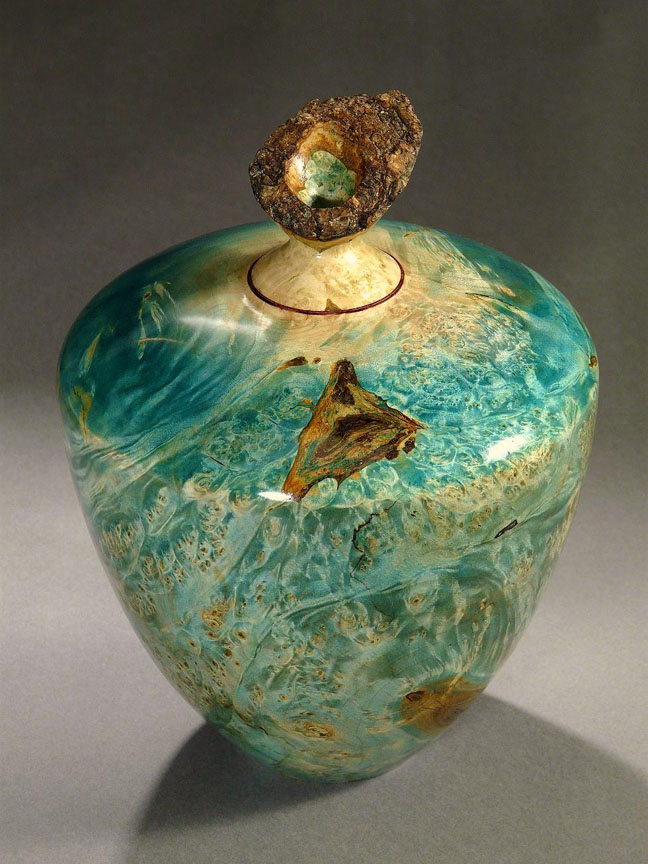 "The Bermuda Triangle", Dyed Boxelder Burl Hollow Vessel, 8-1/4 x 6 inches. Reminds me of scenes