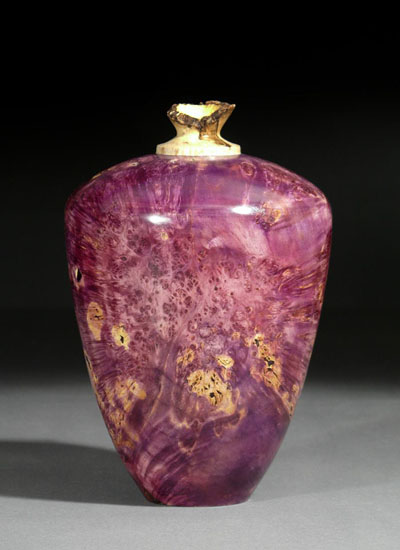 Dyed Boxelder Burl Hollow Vessel, 5-1/2 x 9 inches.