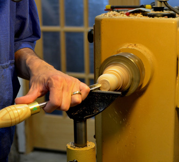 shaping is done with the spindle roughing gouge, followed by a spindle gouge and/or the skew