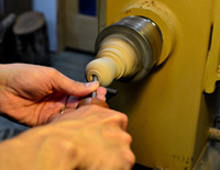 exterior base. Finally, I part off the piece with a thin parting tool.