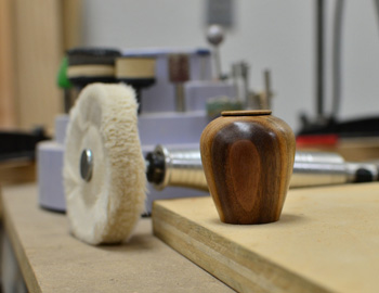 the pores of this ash vase. Once the wax was dry, I buffed off the excess. The small spalted pecan