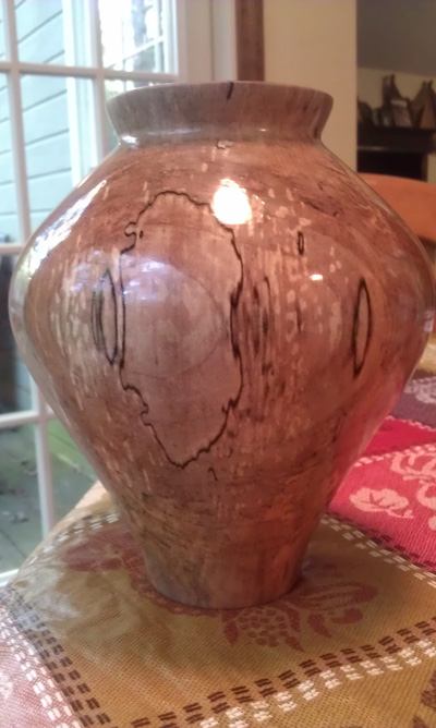 A second Ambrosia maple vase. This piece of wood came home from our daughter's and son-in-law's back yard in Marietta, GA to Michigan then to Columbia, TN as a gift to my aunt.
